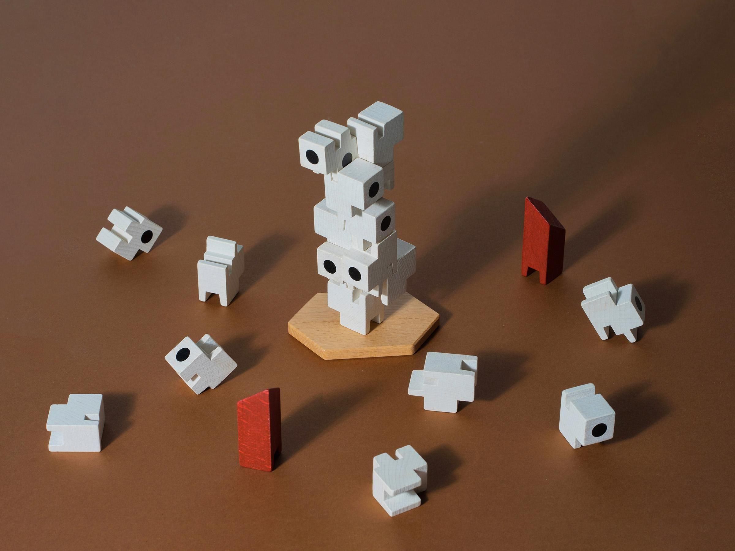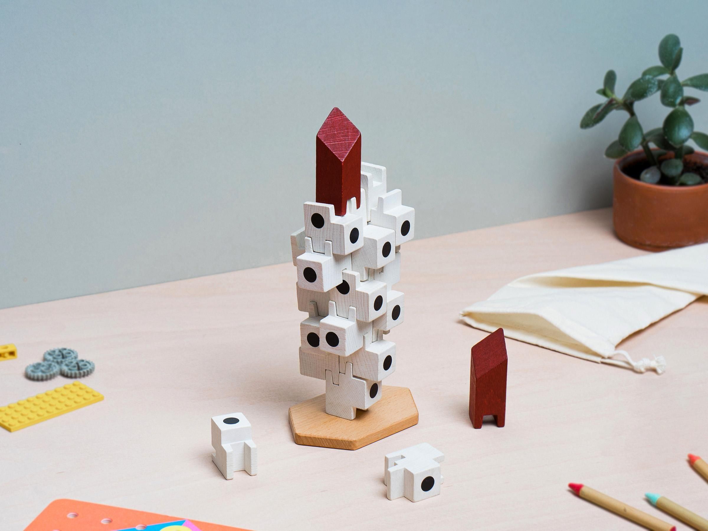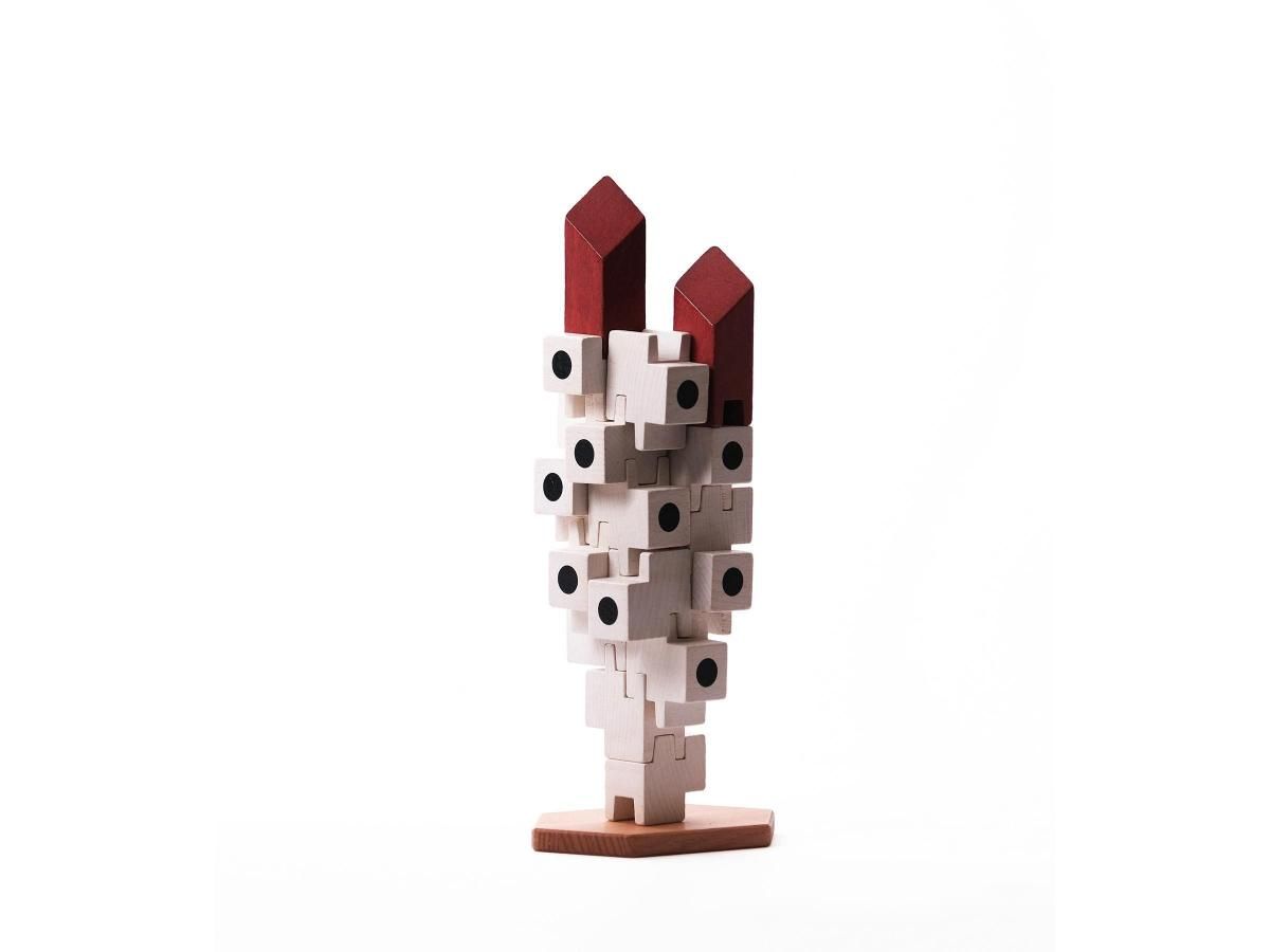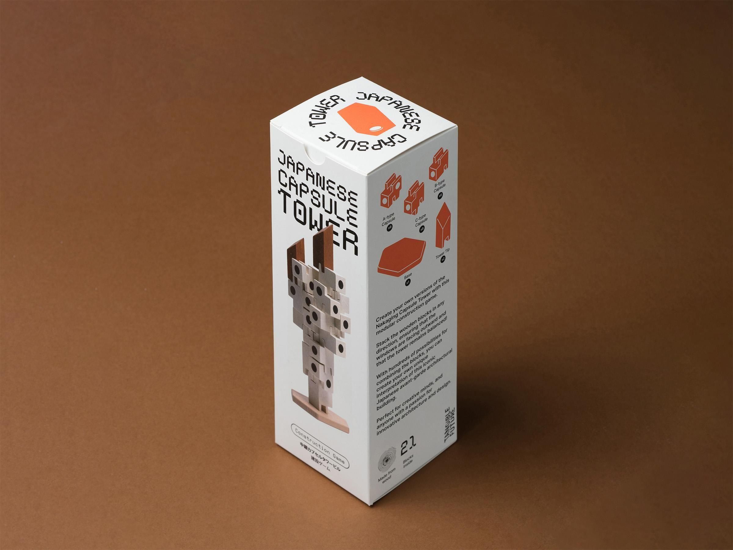 Focusing on the modular structure that was the building's concept, you can freely combine 21 wooden blocks to create your own original capsule tower.