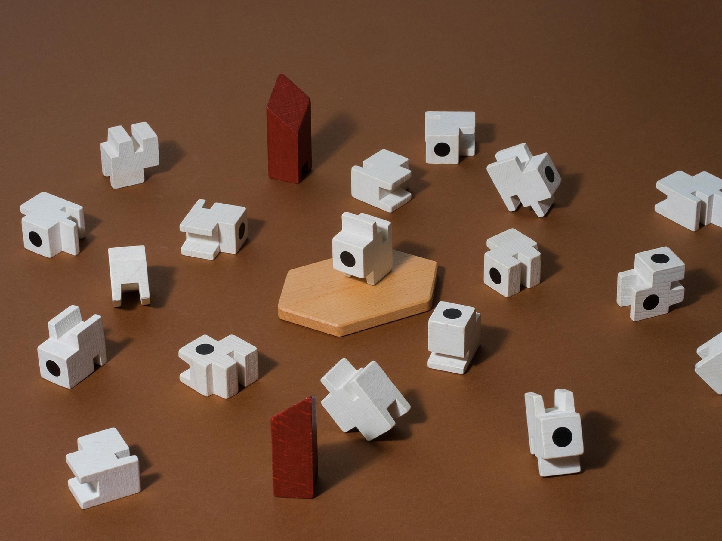 Beech wood, water-based pigments, cotton bag